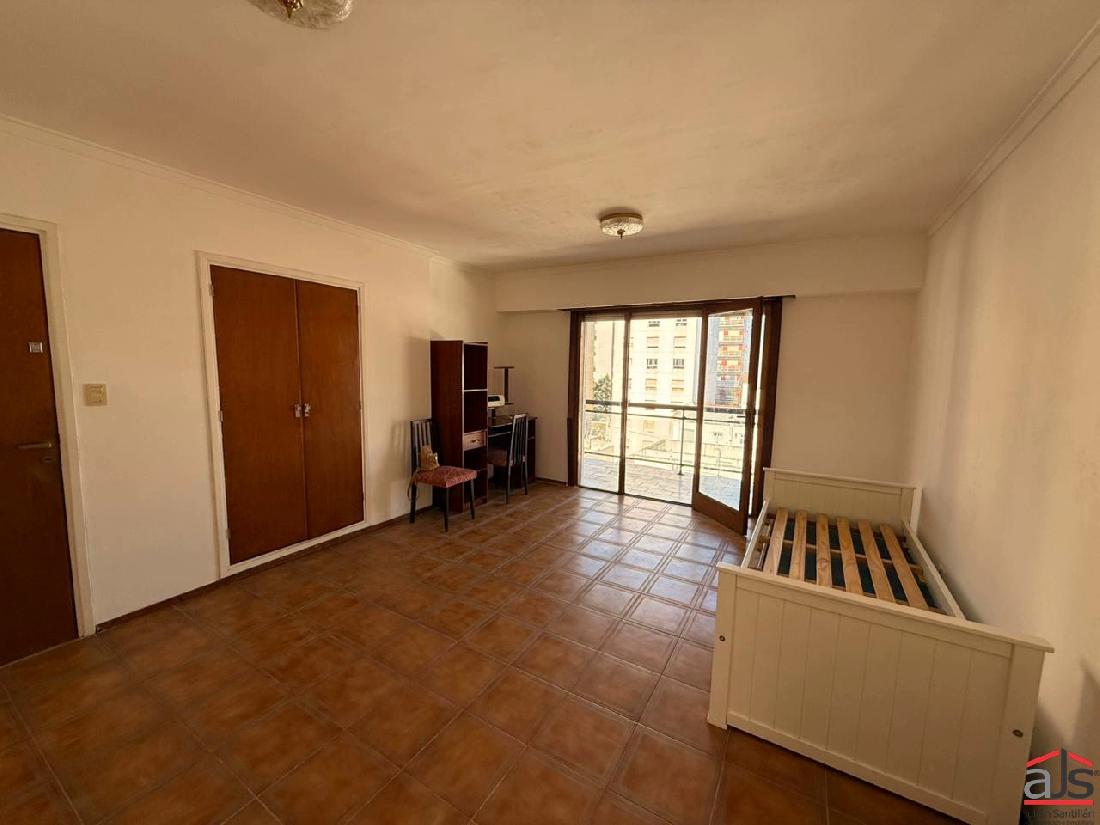 Es un ambiente único amplio, con placard empotrado de buenas dimensiones y un balcón al contra frente que le aporta buena luminosidad.